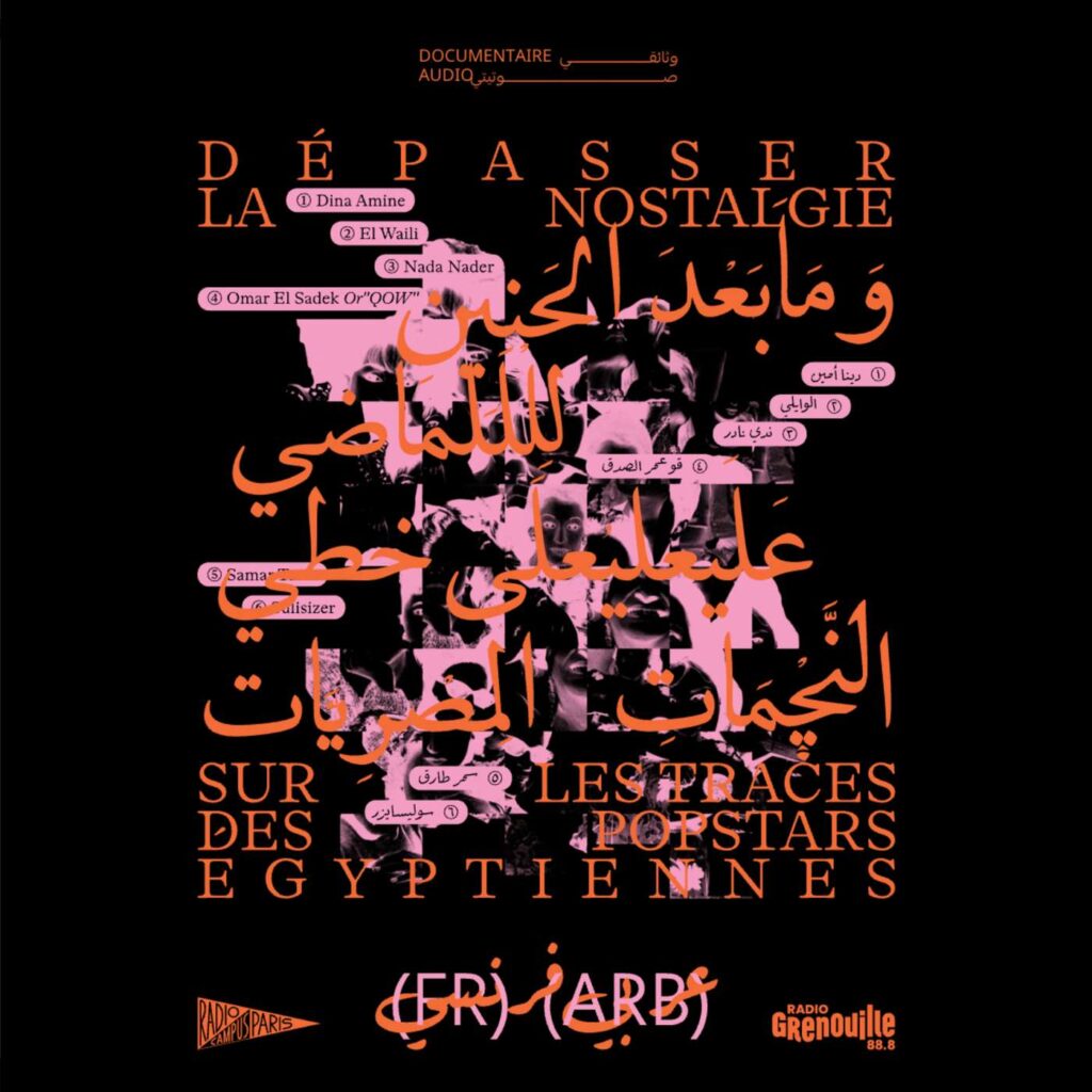 Dépasser la nostalgie: sur les traces des popstars égyptiennes est un documentaire sonore explorant l’influence de chanteuses femmes populaires en Egypte à travers une génération d’artistes actuels. L’écriture s’est faite à partir d’échanges auprès de six artistes de milieux divers explorant chacuns pop, folk indé, ambient, shaabi égyptien, et rap.