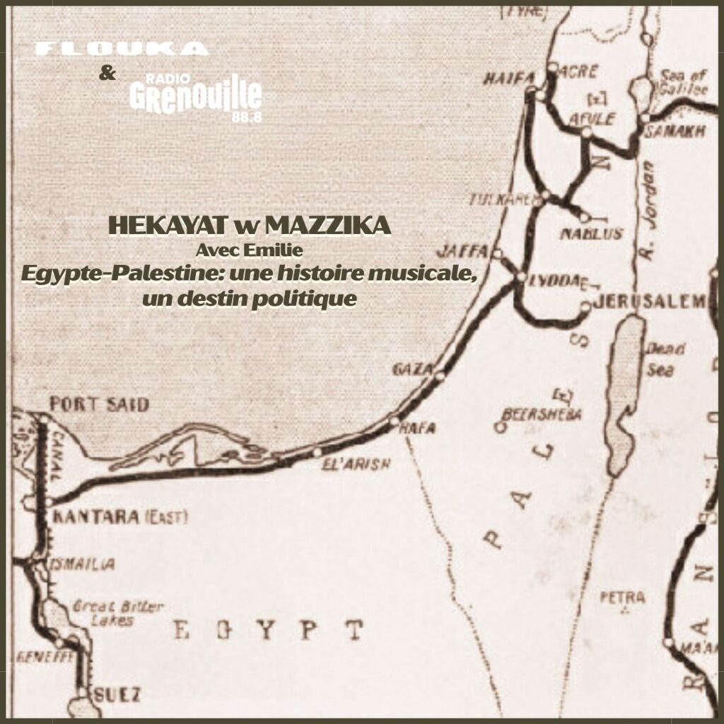Des années 1910 à nos jours, qu’est ce qui a pu unir la Palestine et l’Egypte musicalement ? Comment ces liens culturels sont-ils devenus des liens de solidarité politique ? Ou est-ce qu’ils étaient déjà politiques ? Comment la Palestine devient vecteur de politisation pour les égyptiens ?J’ai essayé de retracer ces traces en passant par la chanson d’Oum Kalthoum “Asbaha andi al’an bunduqiya”, les voyages d’entres autres Asmahan en Palestine dans les années 40, et le rôle qu’ont joué les anciens chemins de fer palestiniens et la radio Palestine Broadcast Service.