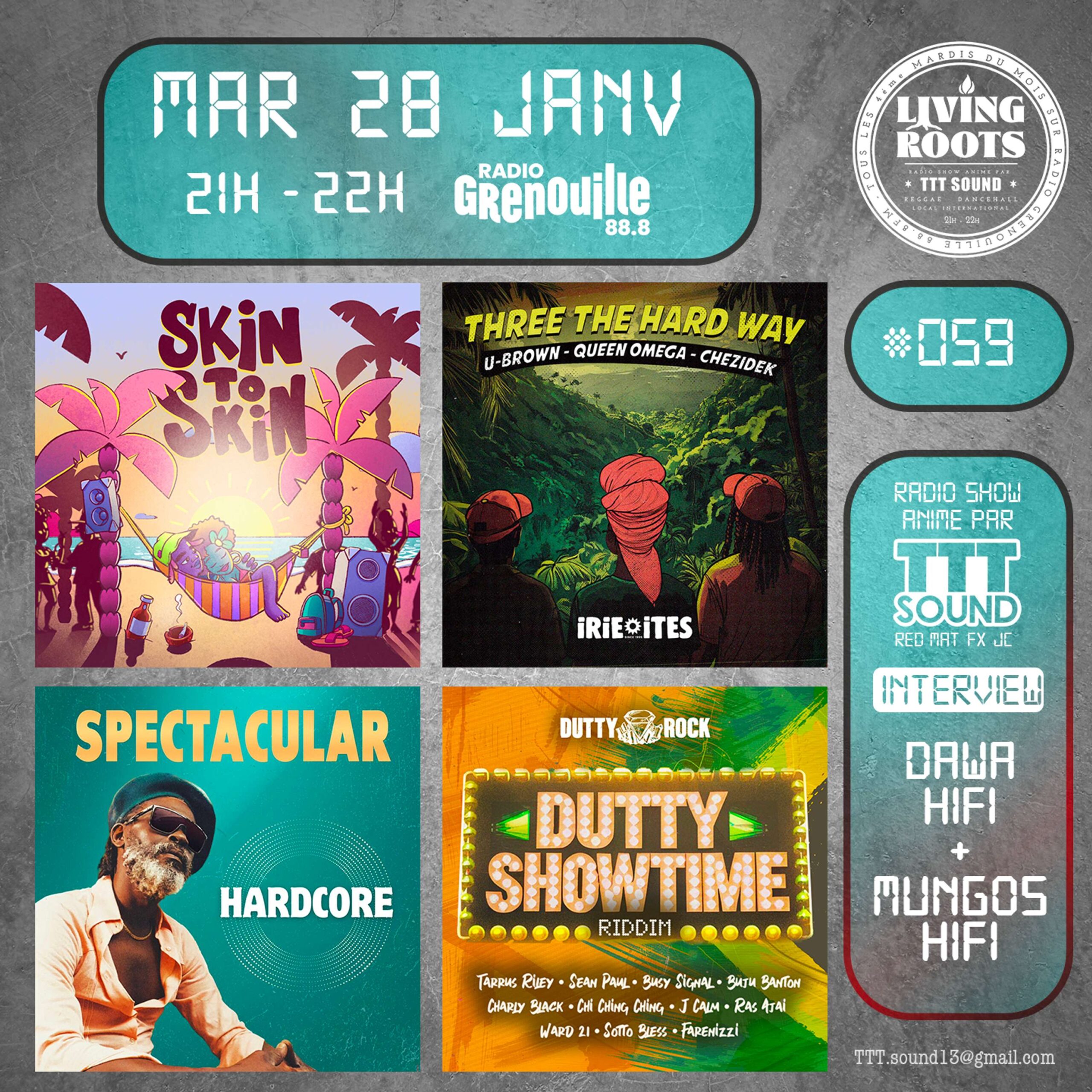 musique LIVING ROOTS #67 | SPECTACULAR / CONQUERING SOUND 26 Nov 2025 1:01:50 musique LIVING ROOTS #66 | MIKEY DREAD (CHANNEL ONE SOUND SYSTEM) 29 Oct 2025 1:02:54 musique LIVING ROOTS #65 | NDJOUGOUP SOUND (Dakar) 26 Août 2025 1:00:59 musique LIVING ROOTS #64 | DUB STATION FESTIVAL 2025 25 Juin 2025 1:00:38 musique LIVING ROOTS #63 | IJAHMAN LEVI 28 Mai 2025 1:00:44 musique LIVING ROOTS #62 | ELVAS / SISKA 23 Avr 2025 1:01:03 musique LIVING ROOTS #61 | LUTAN FYAH 26 Mar 2025 59:44 musique LIVING ROOTS #60 | ALEXANDRE GRONDEAU 26 Fév 2025 1:03:08 musique LIVING ROOTS #59 | DAWA HIFI & MUNGO’S HIFI 29 Jan 2025 1:00:49 musique LIVING ROOTS #58 | 6 Jan 2025 1:00:31 musique LIVING ROOTS #57 | BIG RED – TOKO BLAZE (feat GARI GREU & LIONEL ACHENZA) 25 Nov 2024 1:00:28 musique LIVING ROOTS Bonus | Entretien avec Stand High Patrol 30 Oct 2024 24:34